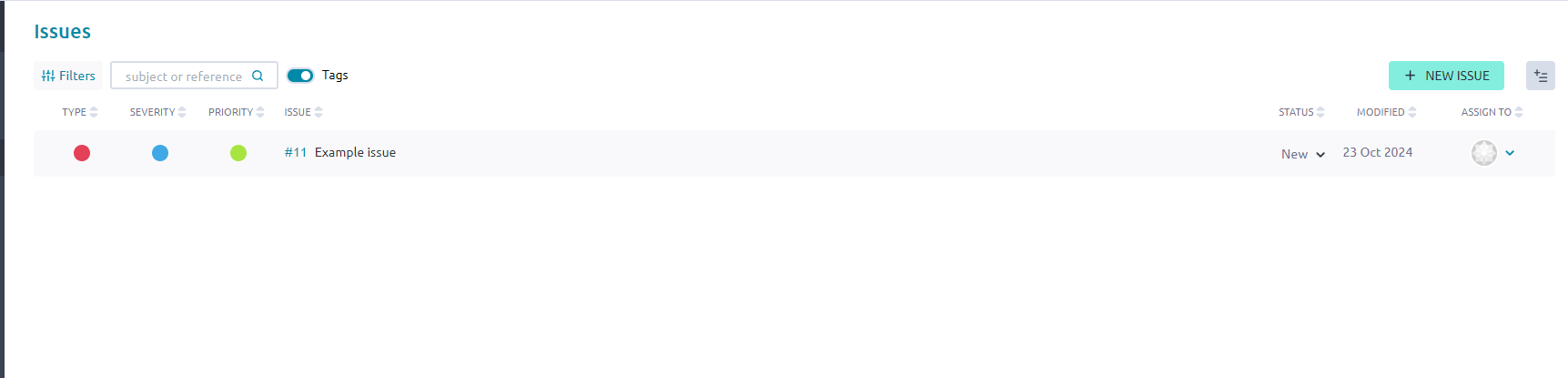 The issues page shows you the Type, Severity and priority of the issue listed. You can also see the status, when the issue was posted and who it’s assigned to.